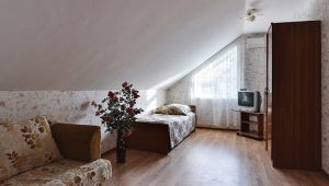 В номере: односпальная кровать, раскладной диван, шкаф для одежды, журнальный столик, телевизор, сплит-система. В ванной комнате: душевая кабина, умывальник. Площадь: